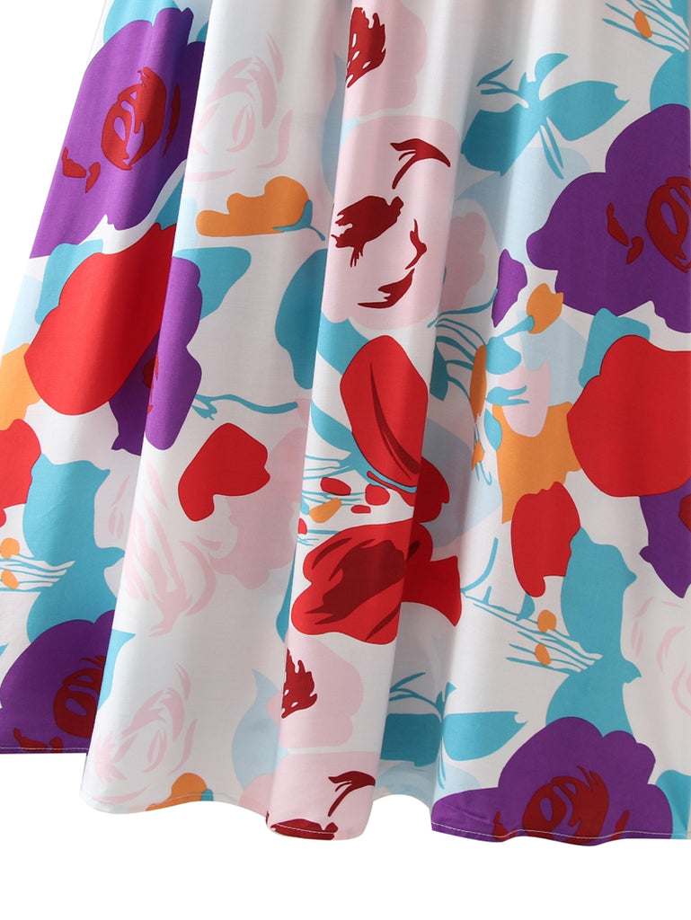 Pattern: Floral Printed, Square Neck, A-Line Dress