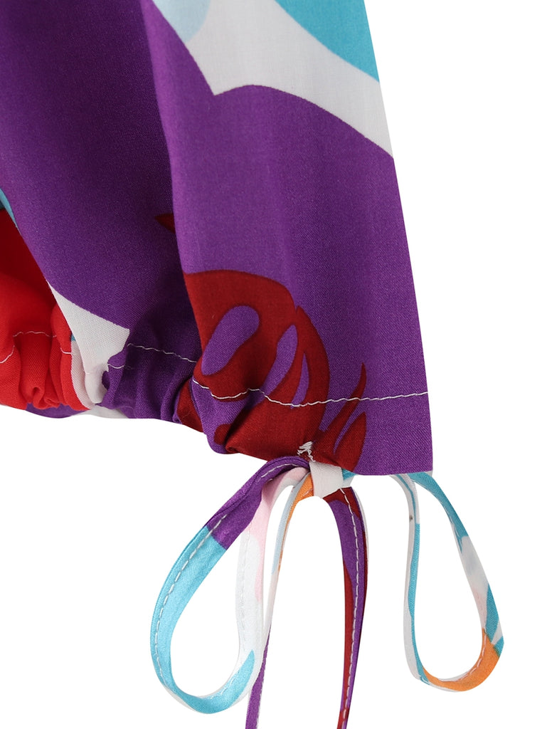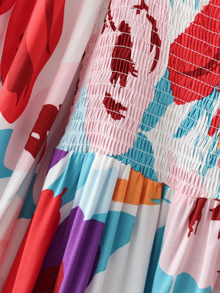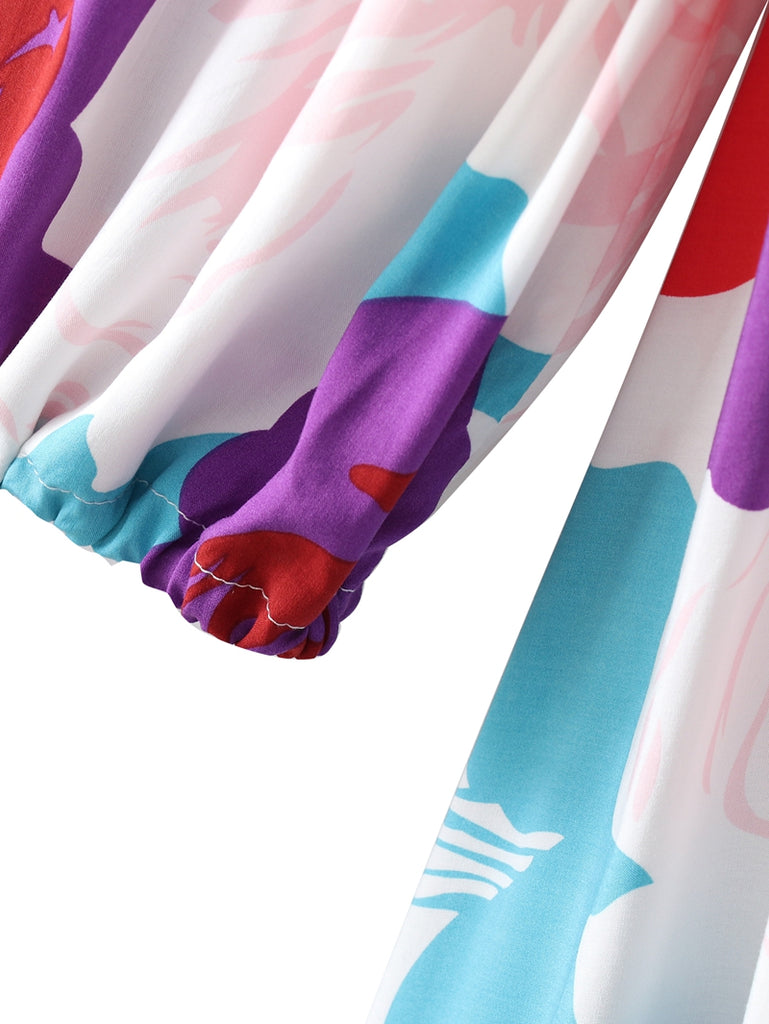 Summer Beautiful Sweet Style Women Retro Floral Printed Square Neck Long Sleeves A Line Dress