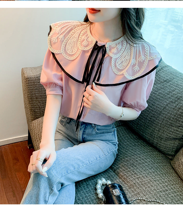 Pattern: Lace Collar Bow Tie, Short Sleeved Top Shirt