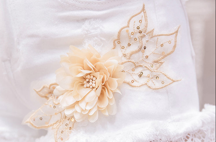 Summer Causal Women Embroidered 3D Floral High Waist Ruffled Lace Hem Jeans Shorts Denim Pants