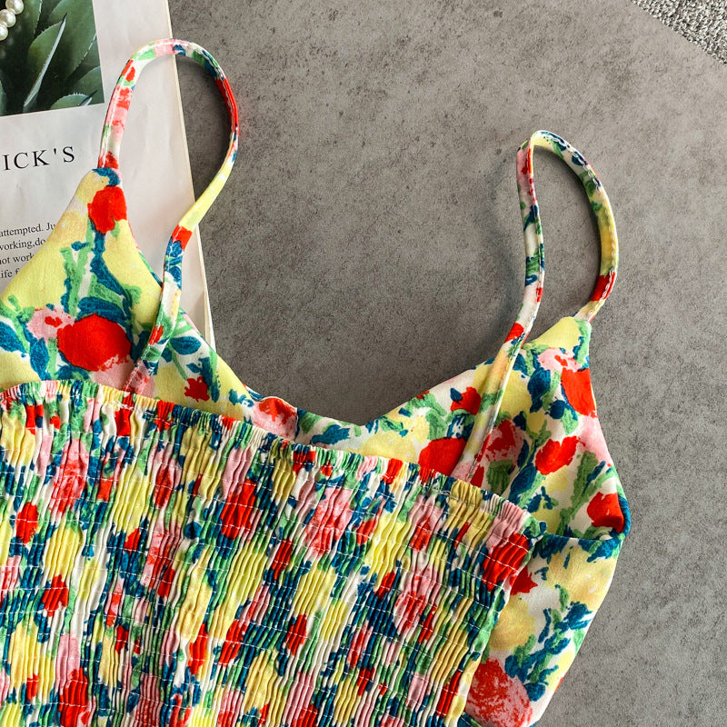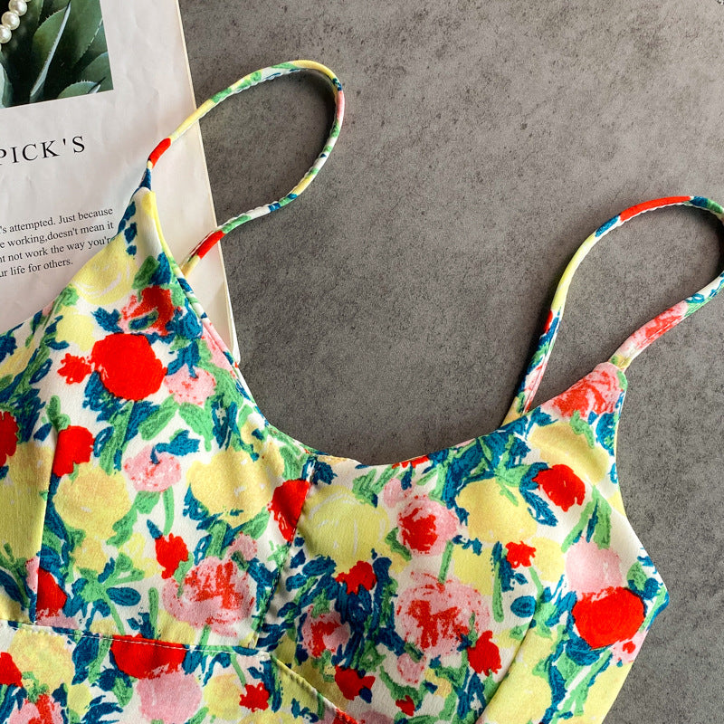 Summer Fairy Sweet Women Camisole Floral Printed Spaghetti Strap Outer Wear Short Top Vest Blouse