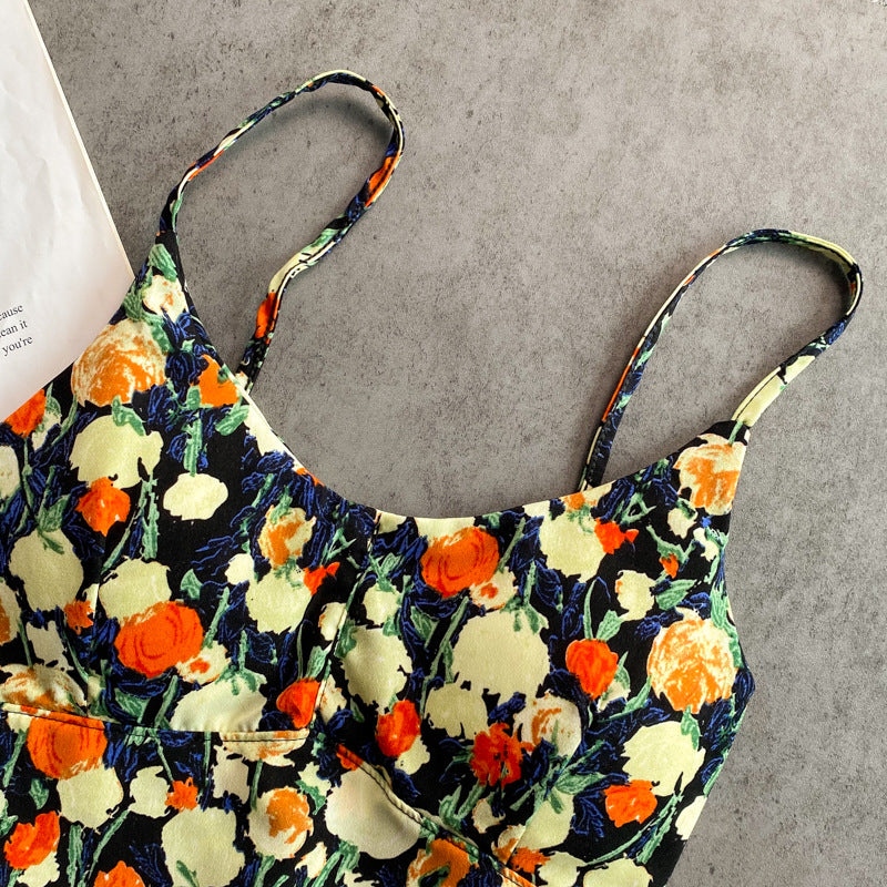 Pattern: Floral Printed, Spaghetti Strap, Short Top Vest Blouse
