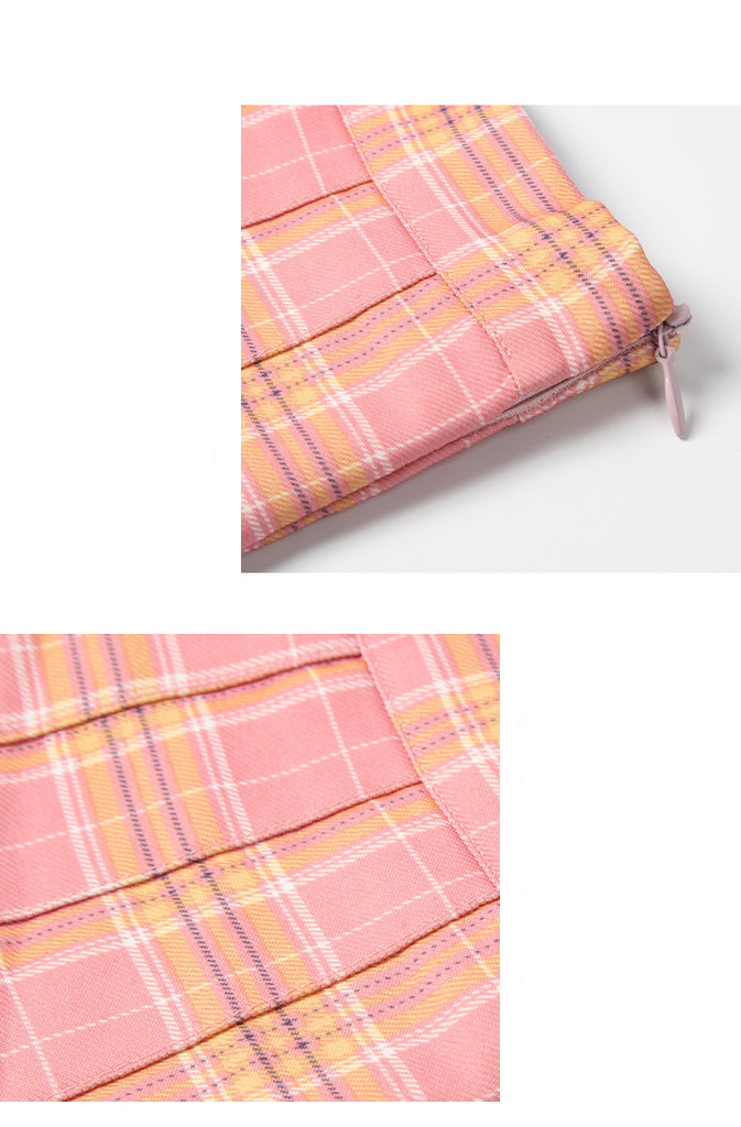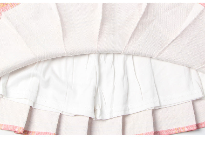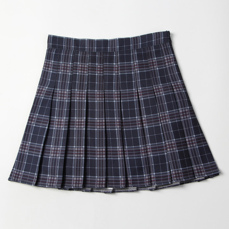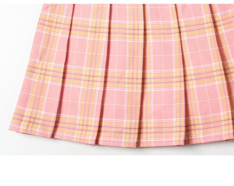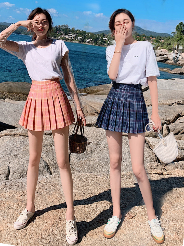 Summer Kawaii Women High Waist Soft Aesthetic Preppy Pleated Short Plaid Maxi A Line Skirt