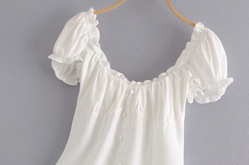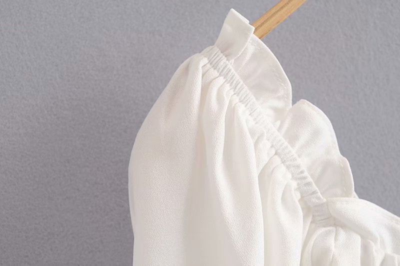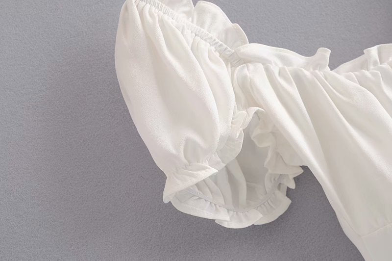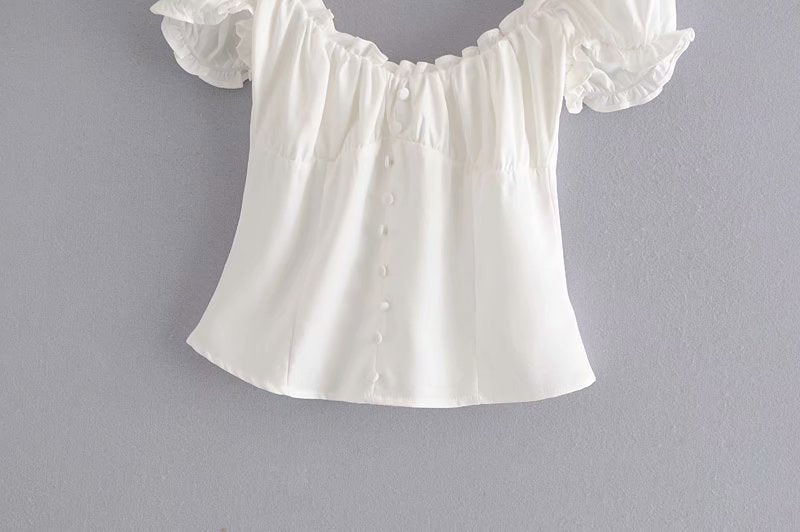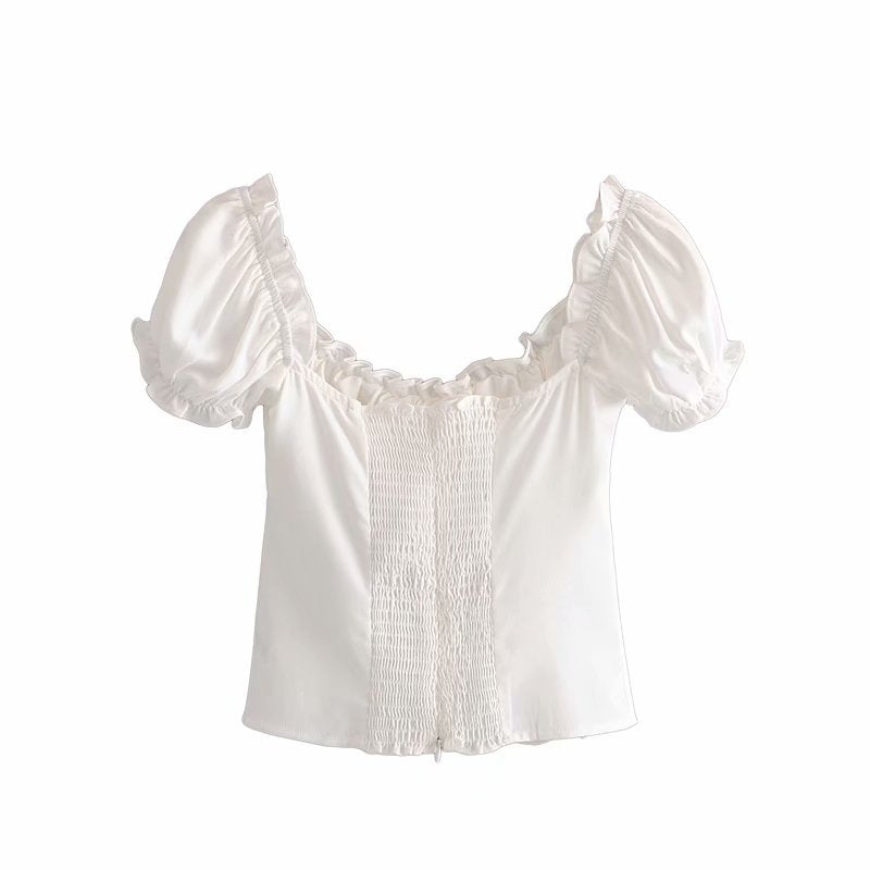 Summer Trendy Lovely Women Fashion Elastic Short Puff Sleeve Floral Printed Scoop Neck Cropped Blouse Top
