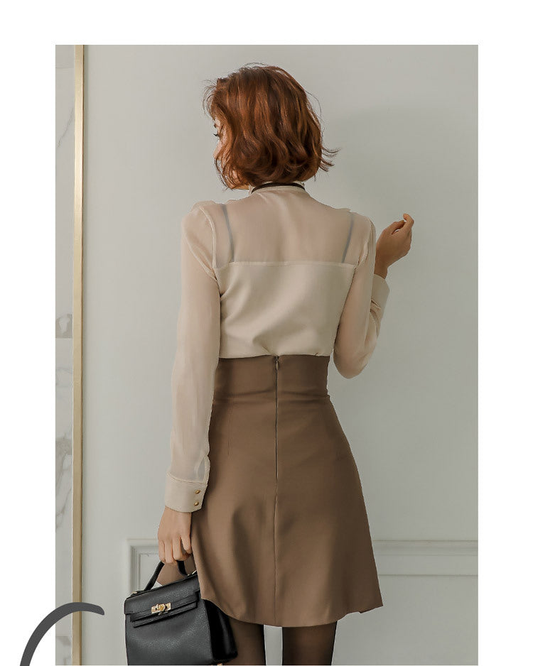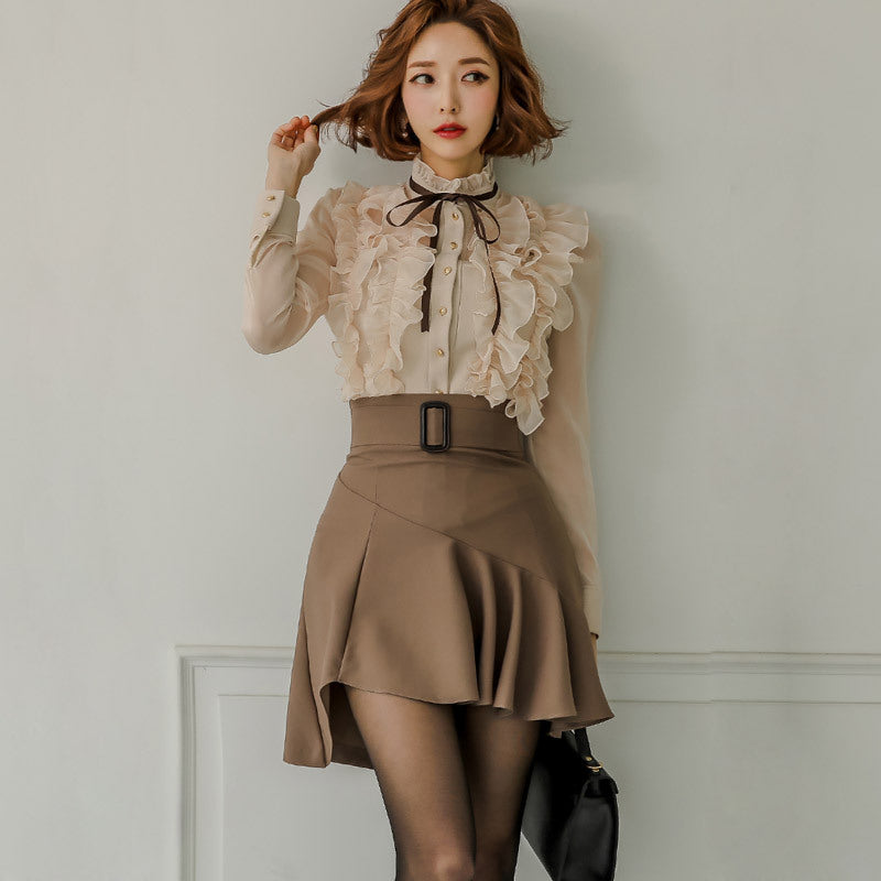 Pattern: Ruffles Shirt, Long Sleeves, Short Skirt