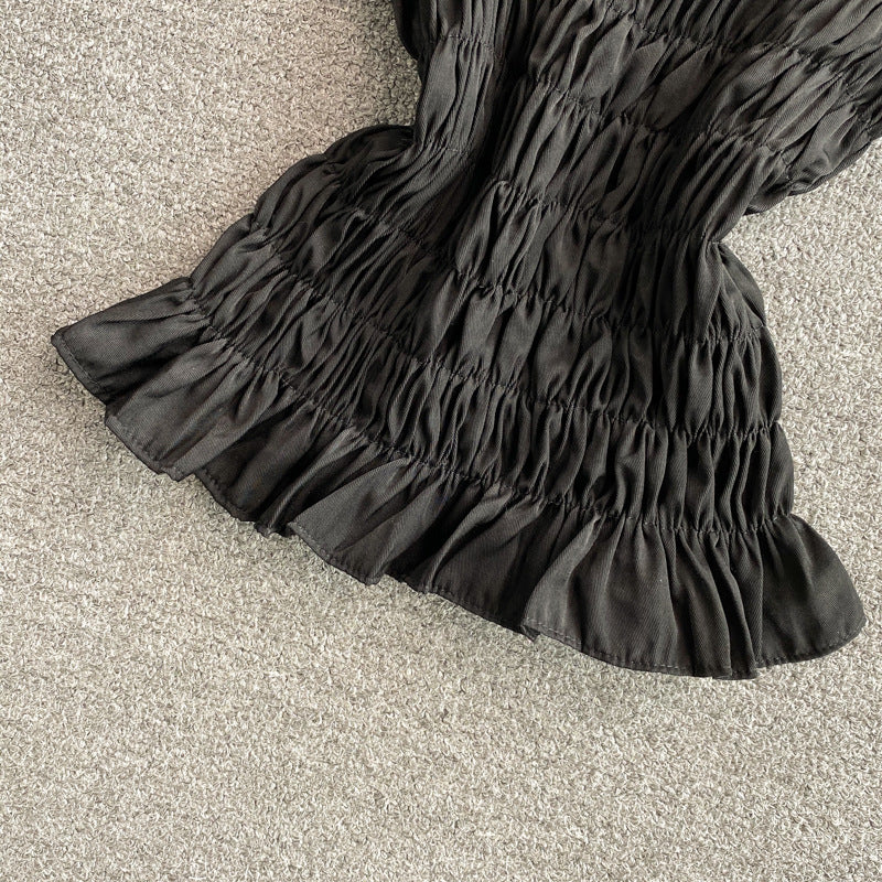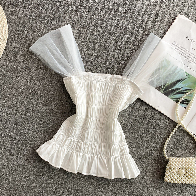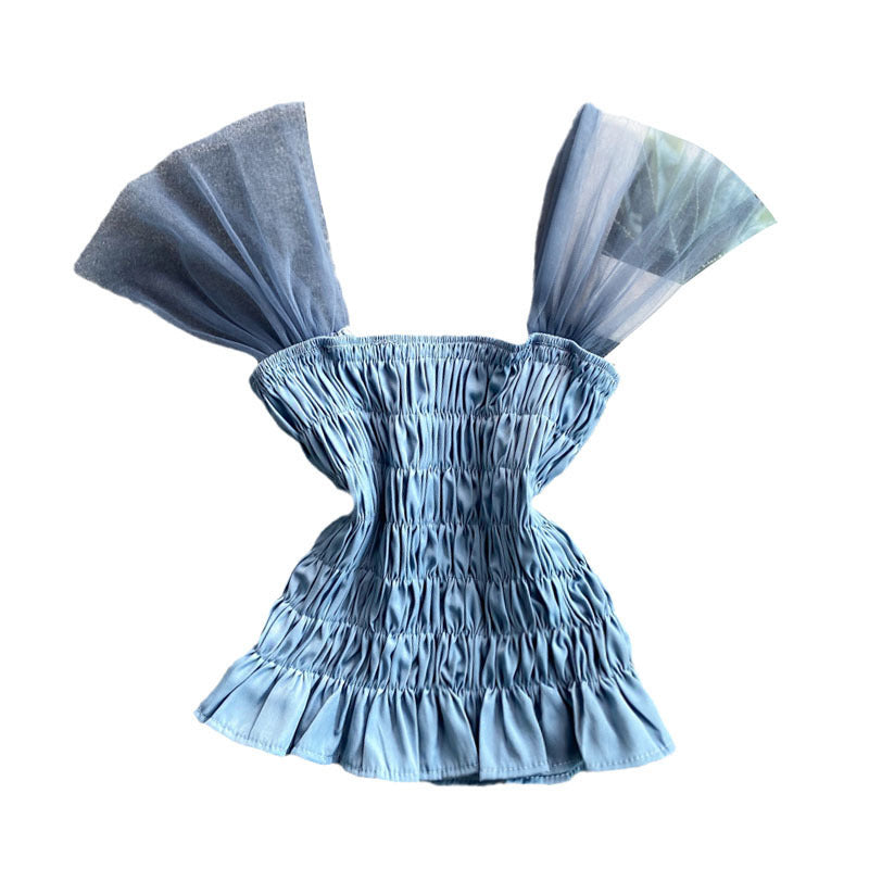 Pattern: Wrinkled Mesh, Ruffle Waist, Short Top Vest Blouse