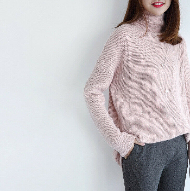 Women Casual Cashmere Turtleneck Long Sleeve Knitwear Casual Top Sweater