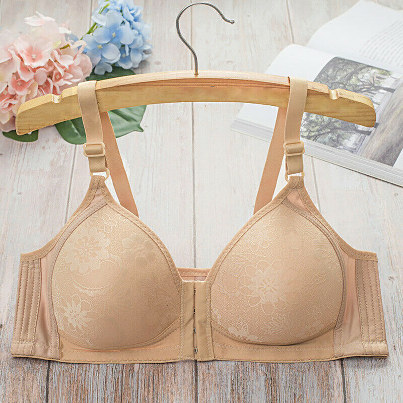 Women Full Cup Bra Front Closure Push Up Padded Wireless Bralette Brassiere Underwear
